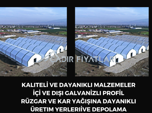 1. Kullanılan boru ve profillerin içi ve dışının aynı oranda galvaniz kaplı olması, (Bu özellik çadır yapının iskelet ömrünün %50 daha fazla olması için önemlidir.)