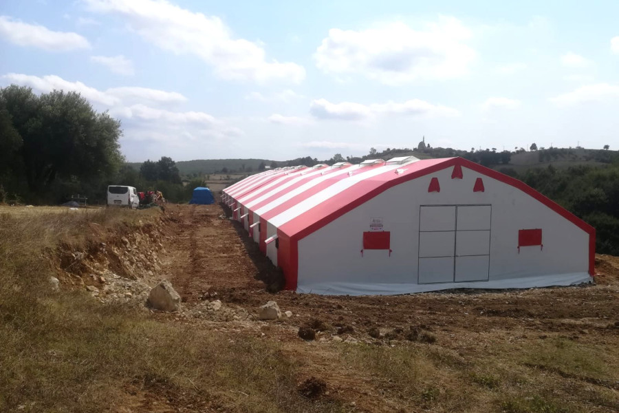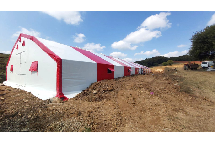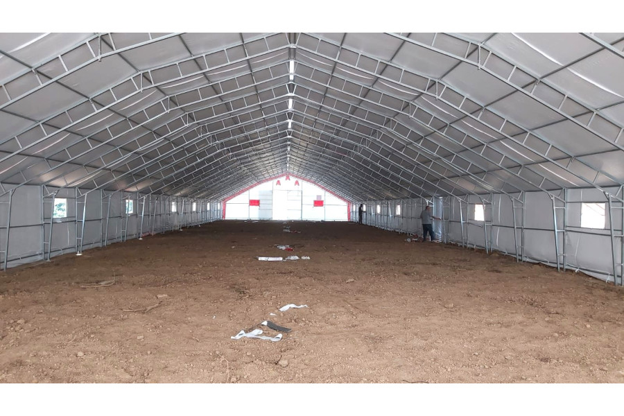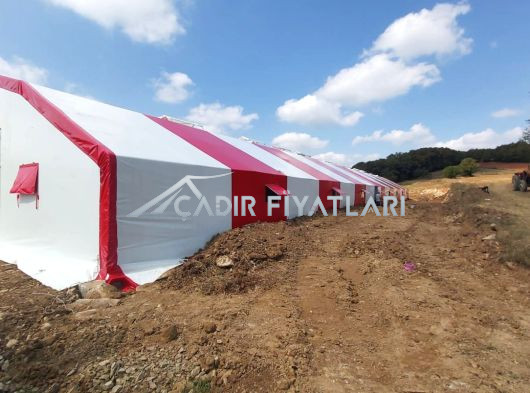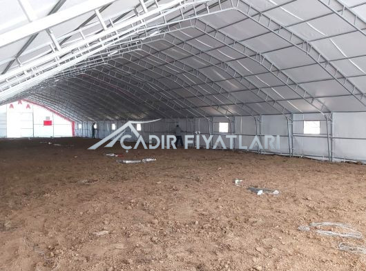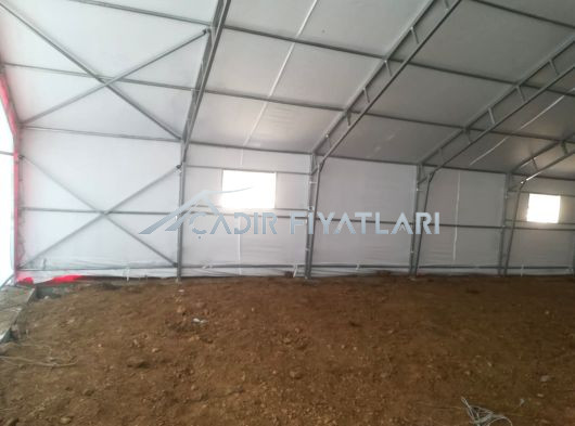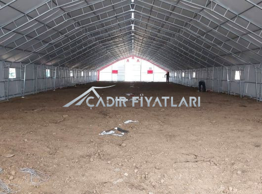 • Çadır yapı içerisindeki havalandırmayı sağlamak için 1 mt genişliğinde 2 mt uzunluğunda üzeri branda kaplı mahya tip havalandırma. (Mahya adet sayısı çadır ebatlarına göre belirlenmektedir.)