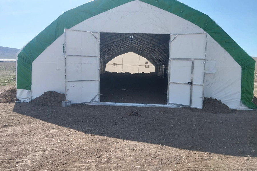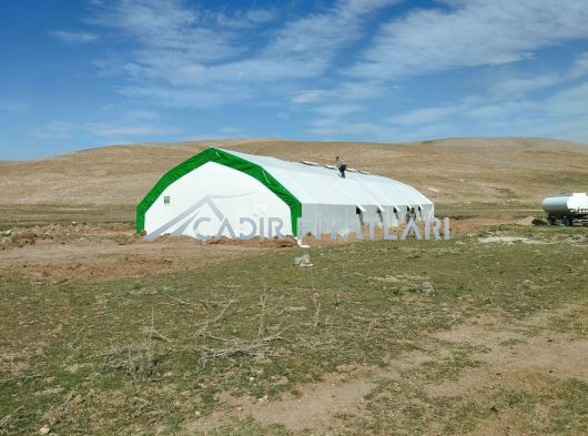 • Çadır yapı içerisindeki havalandırmayı sağlamak için 1 mt genişliğinde 2 mt uzunluğunda üzeri branda kaplı mahya tip havalandırma. (Mahya adet sayısı çadır ebatlarına göre belirlenmektedir.)