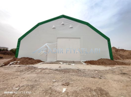ü Önde 2,40 m x 2,80 m menteşe kilit mekanizmalı kelebek kapısı mevcuttur. (Depo çadırlarında sürgülü kapı kullanılabilir.)