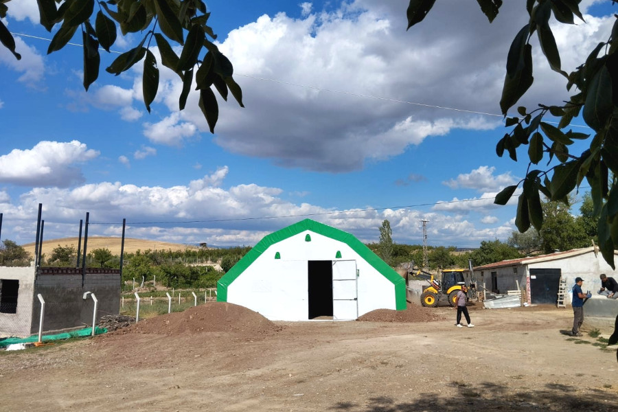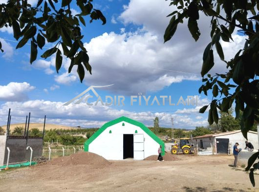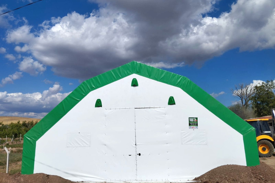 ü Önde 2,40 m x 2,80 m menteşe kilit mekanizmalı kelebek kapısı mevcuttur. (Depo çadırlarında sürgülü kapı kullanılabilir.)