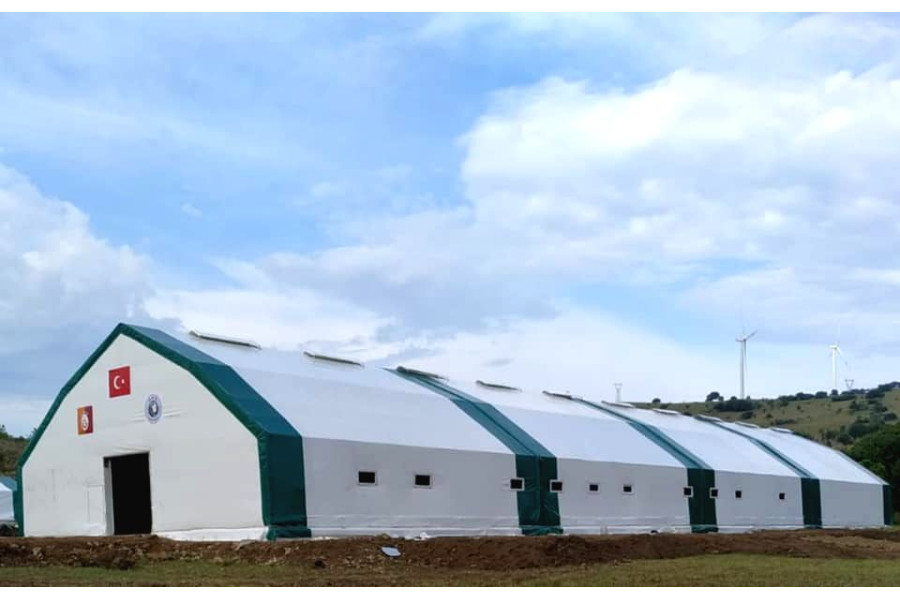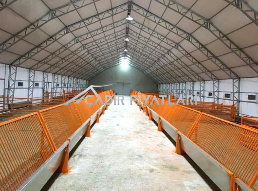 • Çadır yapı içerisindeki havalandırmayı sağlamak için 1 mt genişliğinde 2 mt uzunluğunda üzeri branda kaplı mahya tip havalandırma. (Mahya adet sayısı çadır ebatlarına göre belirlenmektedir.)