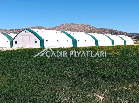 • Çadır yapı içerisindeki havalandırmayı sağlamak için 1 mt genişliğinde 2 mt uzunluğunda üzeri branda kaplı mahya tip havalandırma. (Mahya adet sayısı çadır ebatlarına göre belirlenmektedir.)